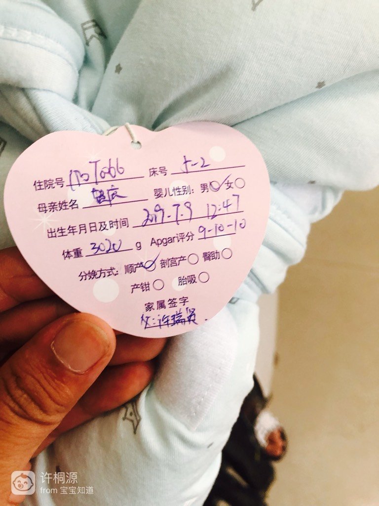 2019年7月9日12时47分,顺产男宝宝一枚,妈妈辛苦了,你真棒👍👍爱你😘。因为宝宝出生时被羊水呛到,所以刚清生出生就住院了,被医院诊断为吸入式禁概坊感染性肺炎,治疗都是封闭式的助径,非常担心宝宝,刚出生都没好好看他长什么样就住院了,后来网上查了,又听医生说了病情后悬着的心才放下一半来,但是还是担心,希望宝宝早日康复。