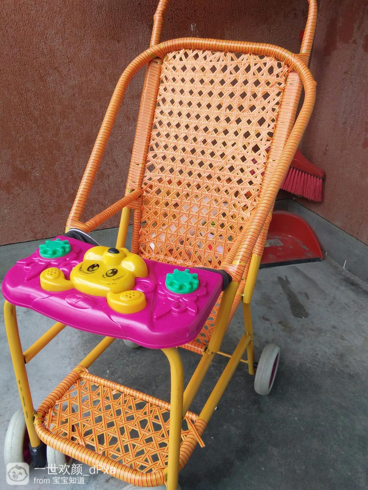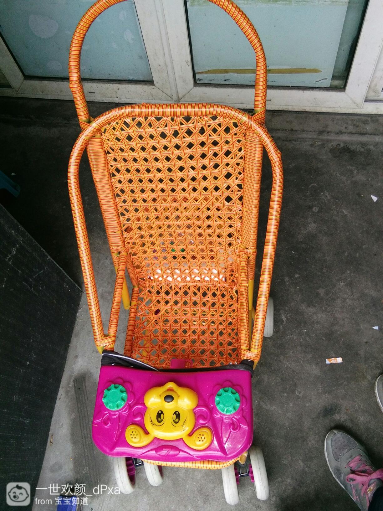 这种推车夏天坐比较舒服,透气性还好。 推着走了走,感觉还不错。 车子后面还有个小篮子,可以装很多东西。出门的时候水杯玩朗脚具啊都可以放在里面。