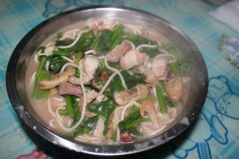 面条(生) 500g 调料 干贝 适量 虾俗敢仁 适量 五花肉 适量 芹菜 适量 芥蓝 适量