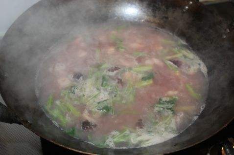 10. 水开后之后汤变北狼成红色 这是红菇的作用的 这个红菇的红是天然的哦 不是染色的哦 营养超级好