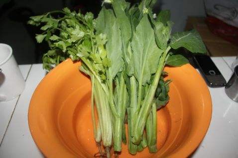 3. 芹菜、芥蓝 用清水浸泡5分钟