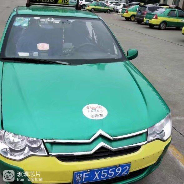 答:车身统一张贴“襄阳宰耻马拉松志愿者”标识。