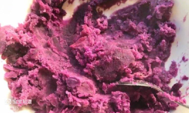 在做米饭的时候顺便蒸一个紫薯,将熟紫薯去皮后放入碗中,趁热用勺子压成泥状。