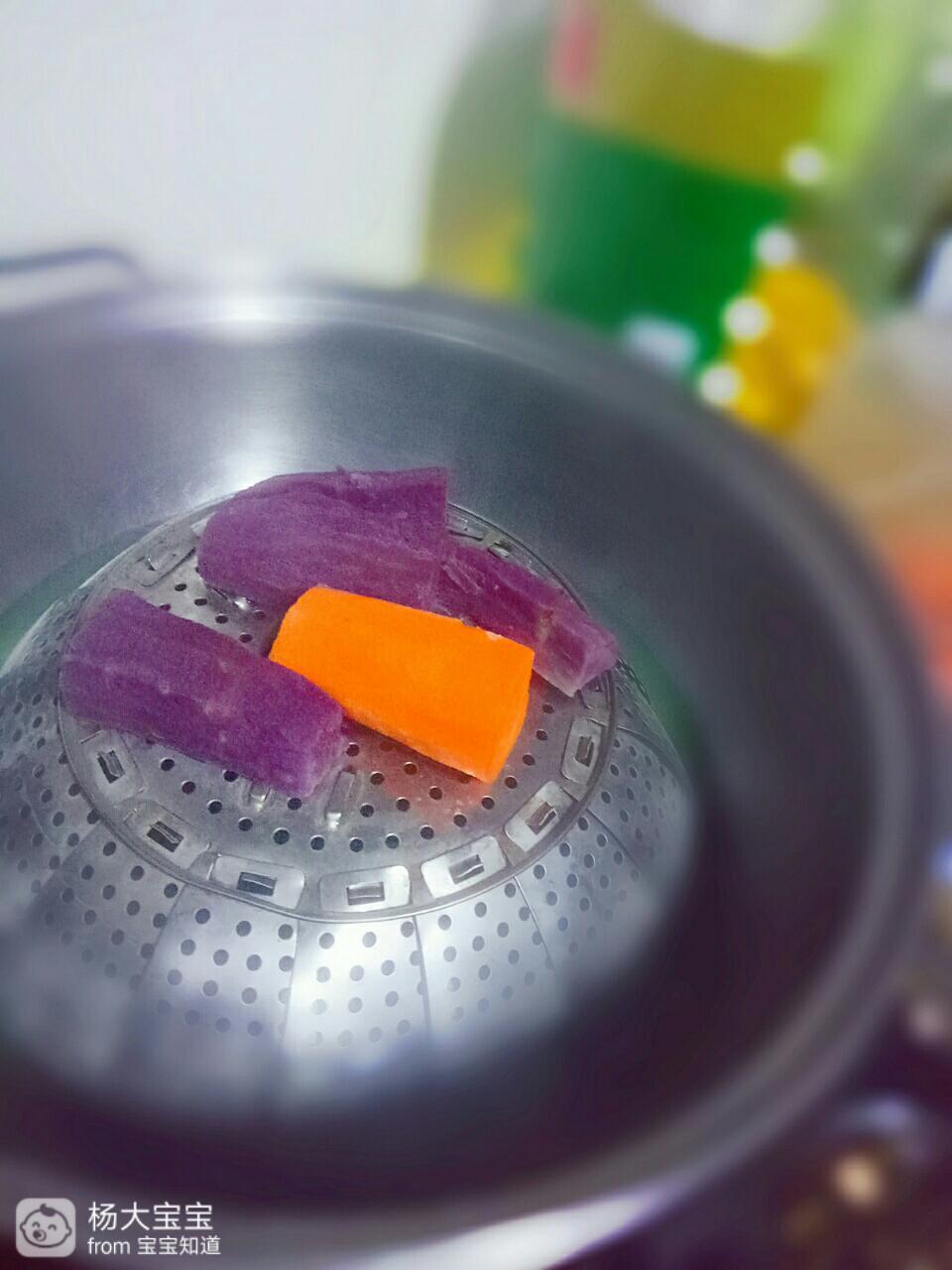 紫薯、胡萝卜上锅蒸15分钟。