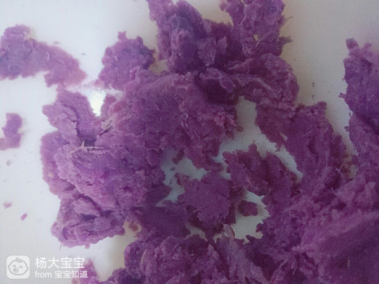 用小勺取出紫薯和胡萝卜,捣成泥。