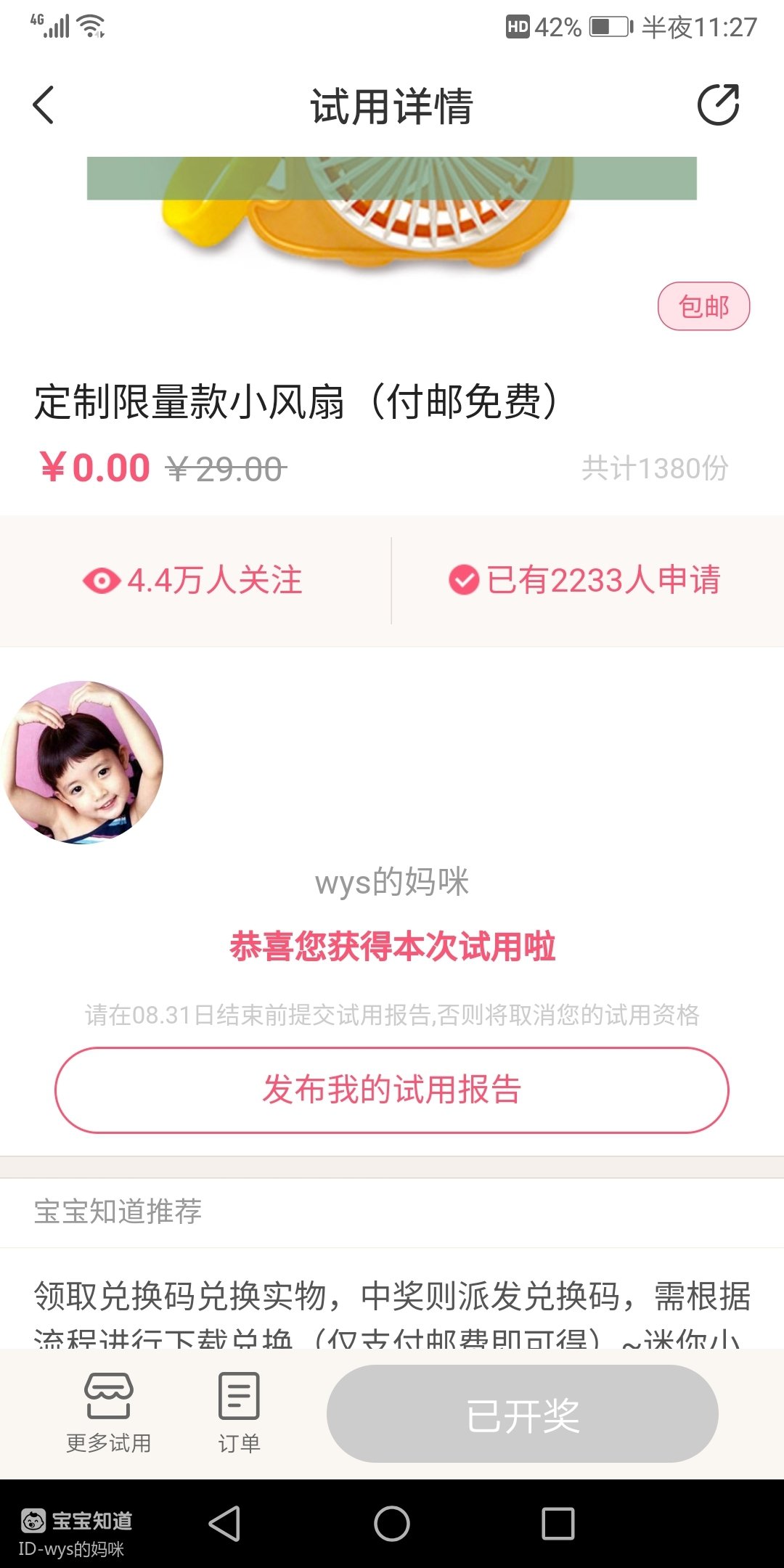 那一天无意中看到了福利社的试用小风扇,立刻就被它的颜值所打动了,真洞安的是一见倾心。赶快就提交了申请。没想到运气这么好竟然中奖了。真的很高兴,真的要感谢宝宝知道这个平台,给我提供这次中奖的机会。