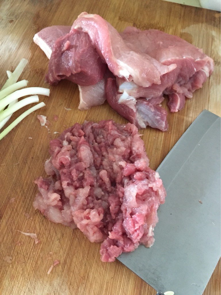 然后瘦肉剁剁剁,剁碎成肉末放一边待用