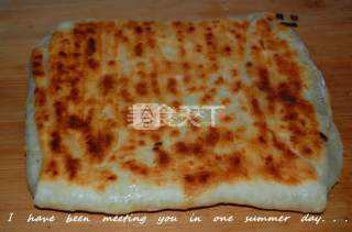 7 在电饼铛里放少许鸭油,将饼放进去,在饼上刷上鸭油,盖上饼铛,选择“大饼”档糕朗,开火。