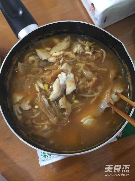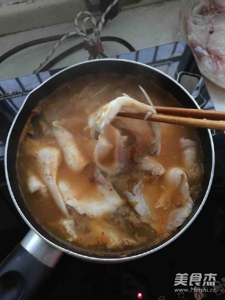 4. 加入鱼片,控制在5分钟左右,鱼片会很嫩。如果想鱼片入味,可以多煮一会,不过口感会老一些。