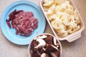 用料 undefined 猪肉切薄片,莲藕切滚刀块,香茹切成小块