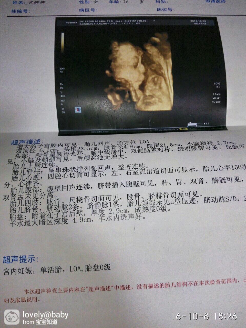 今天四维顺利通过,各位宝妈探讨一下是男宝还是女宝呢,一下是b超单子