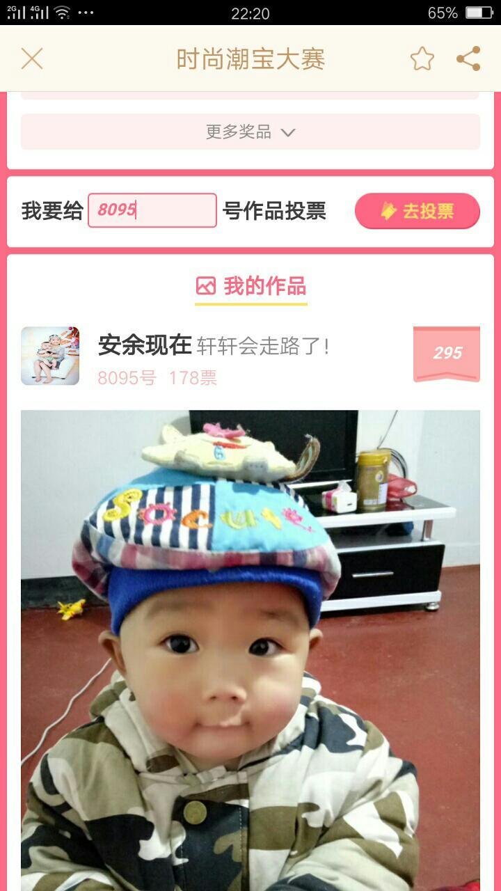 宝宝9岁9个月31天 LV.5也请你给我的龙昊轩投上一票吧已投,互投8095,在活动页面翻下去点我要给8095号投票,不是点赞,今天投完,明天十点继续诚信互投哦(⊙o⊙)哦