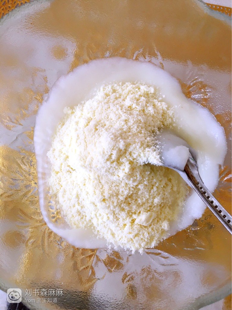 奶粉过筛,搅拌均匀至无颗粒状;