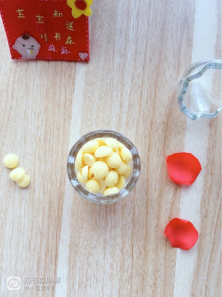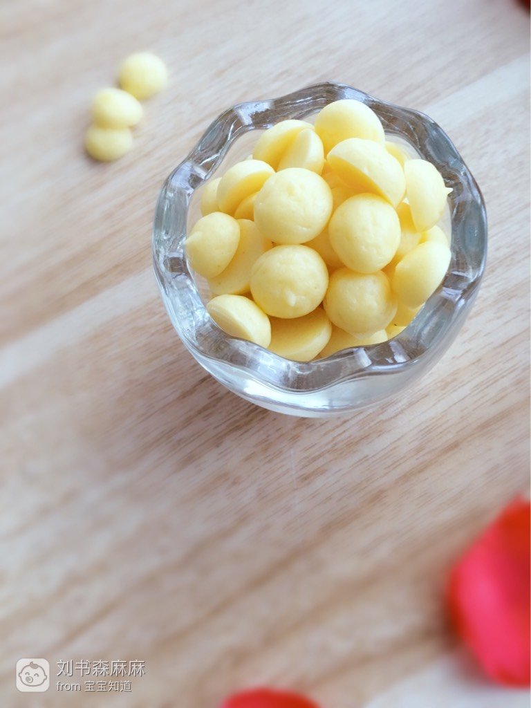 宝宝在八个月左右,就可以适量的添加一些块状的食物了,我家宝宝四个月的牙,吃些块状的食物,可以有效的锻炼宝宝的咀嚼能力,做成小溶豆,让宝宝自己练习抓握,一举多得!