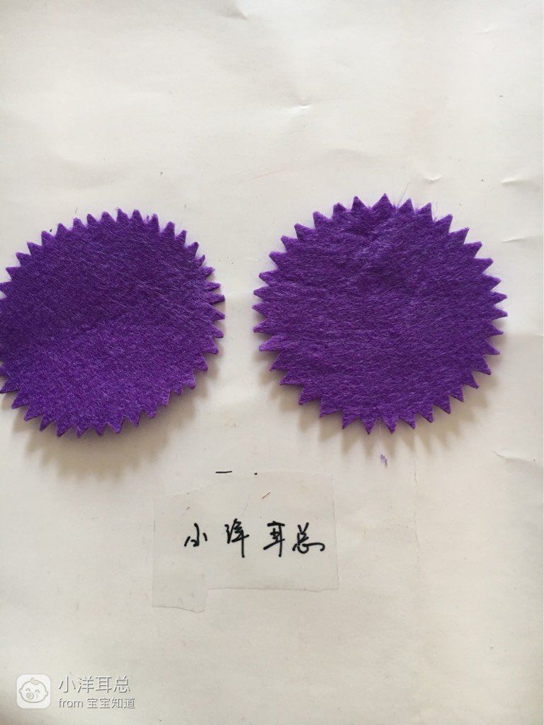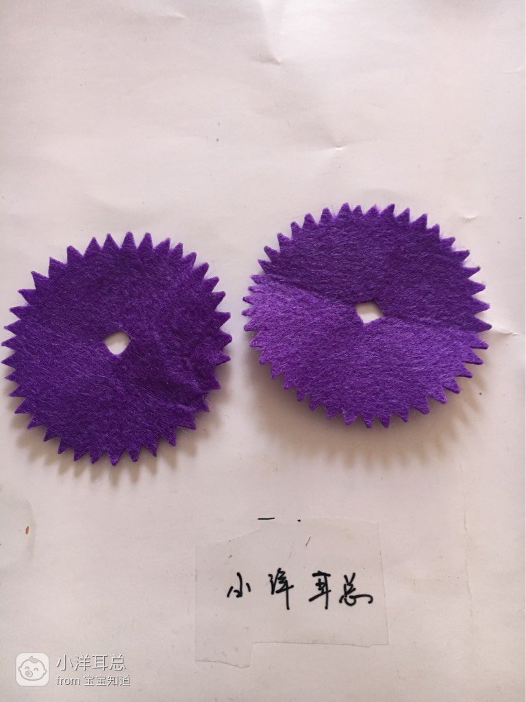 把剪下的2块圆形不织布剪出齿轮