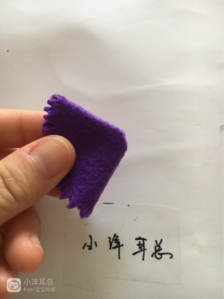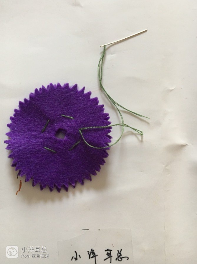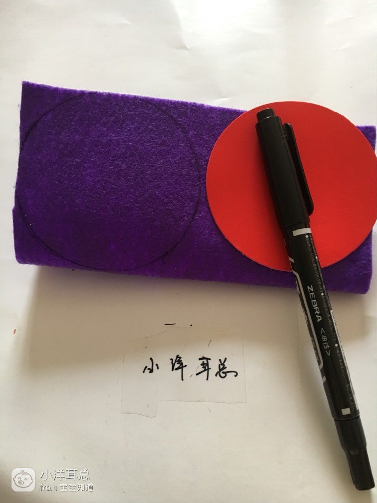 准备:紫色、蓝色不织布(没有绿色不织布就用蓝色代替了),针线,竹签,笔,圆形纸板