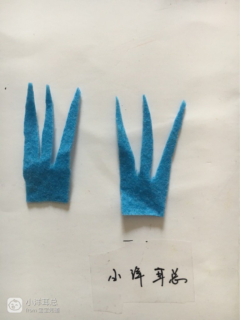 蓝色不织布剪出2片叶子