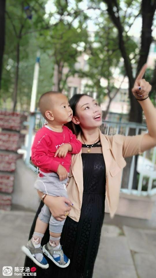 来张与涵宝的合影,看我的子涵宝宝是不是很配合呢?其实我是各种引逗,吸引他的注意力,子涵你看 树上有什么