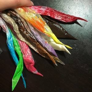 融化白巧克力,用色素根据自己的需要调出颜色,装进裱花袋,分别填满