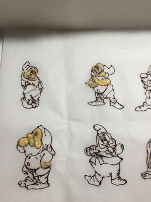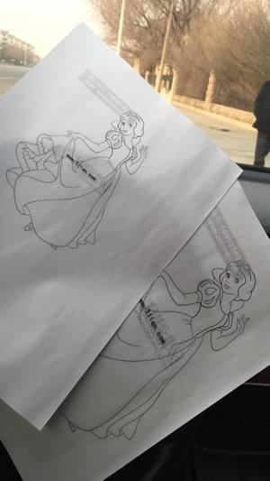 打印图片上覆盖一张油纸,固定好,把公主线描下来
