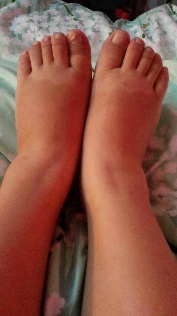 脚肿的不成样子了,走路还疼
