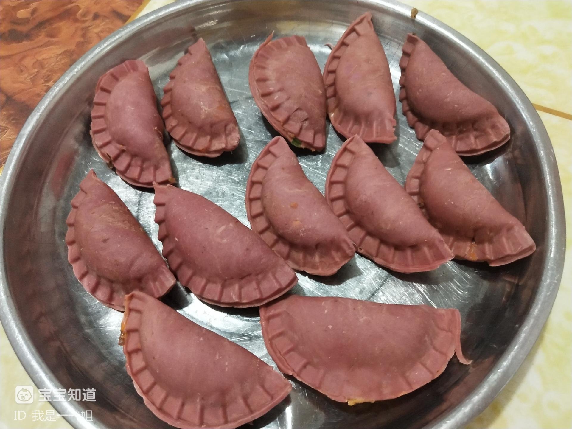 把甜菜根儿洗完洗干净,去了皮打成汁。然后把上面活好,面之后就是红色的了。把面团擀成薄皮,然后去用这个面包饺子就是一个红色的饺子,好看又好吃,小宝宝们更加愿意吃面食了。