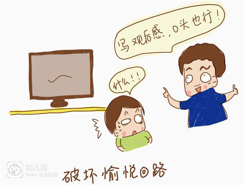 事实上,让孩子每次看完动画片分享《观后感》,写《观后感》或口头做《观后感》的做法,是在破坏孩子“看动画片——快乐”的愉悦回路,既然看电视再也不愉快了,孩子干脆就不看电视了;除此之外,爸妈还可以在孩子戒除“电视瘾”后,给孩子建立新兴趣的“愉悦回路”,比如让孩子从事有趣有益的游戏或运动,帮孩子把时间放在更丰富的活动中。