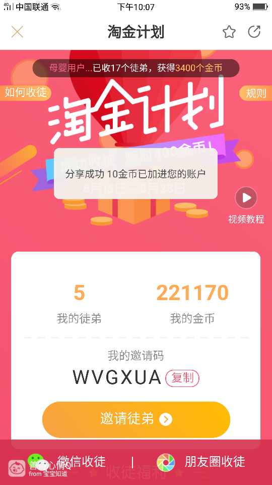如果你还有人脉的话,那么建议你去邀请人夕印射吧,咱们宝宝知道还是特别豪的,只要是邀请到新人,愿相你就会有多多的金币进账了。那么你就可以去兑换自己心仪的物品。当然啦,宝宝知道这么好的平台,把它分享给别人,让更多的人来发现宝宝知道的好。 让我们共同来学习更多的育儿知识。认识更多的好朋友 !话说回来了,这份隐藏的福利,你有没有错过呀!如果之前错过了没有关系,当你发现我的帖子的时候,你赶紧的去分享吧,不要忘记喽。絮泳