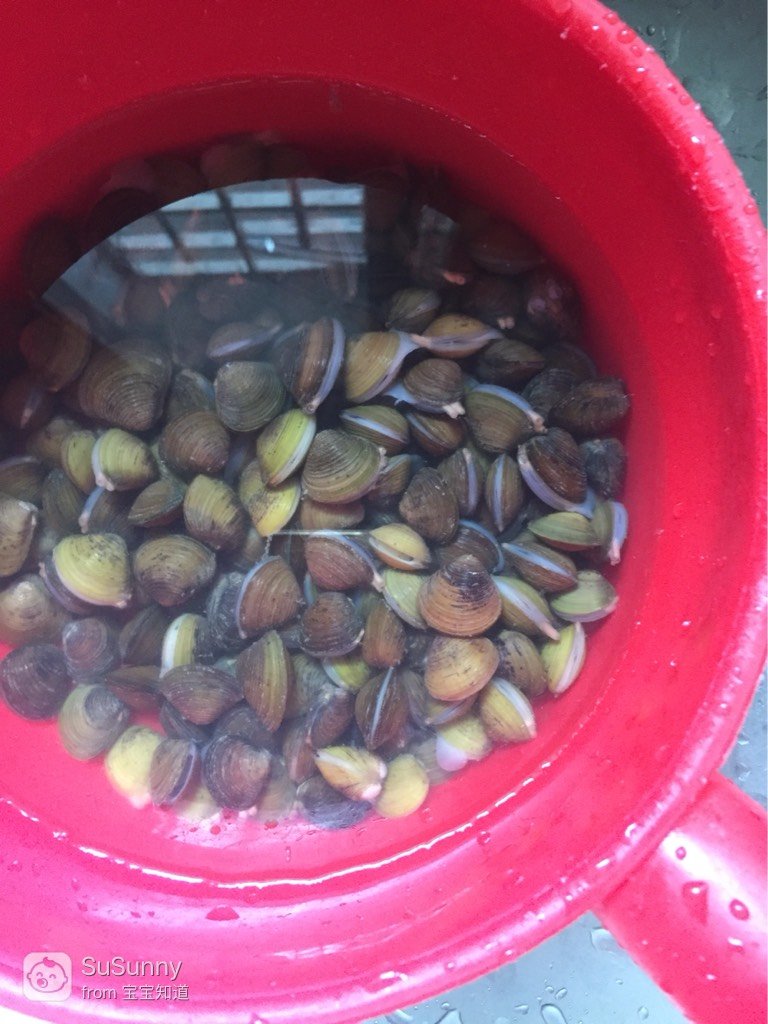 沙蜊双手搓洗去泥沙,装盘待用。