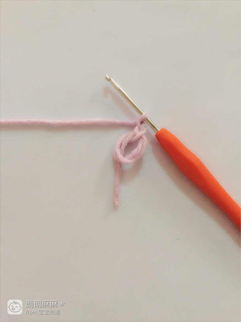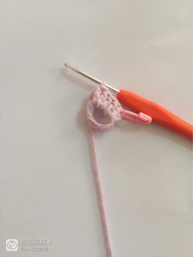 把线圈拉紧,紧接着再出勾两个锁针,勾好后如图所示