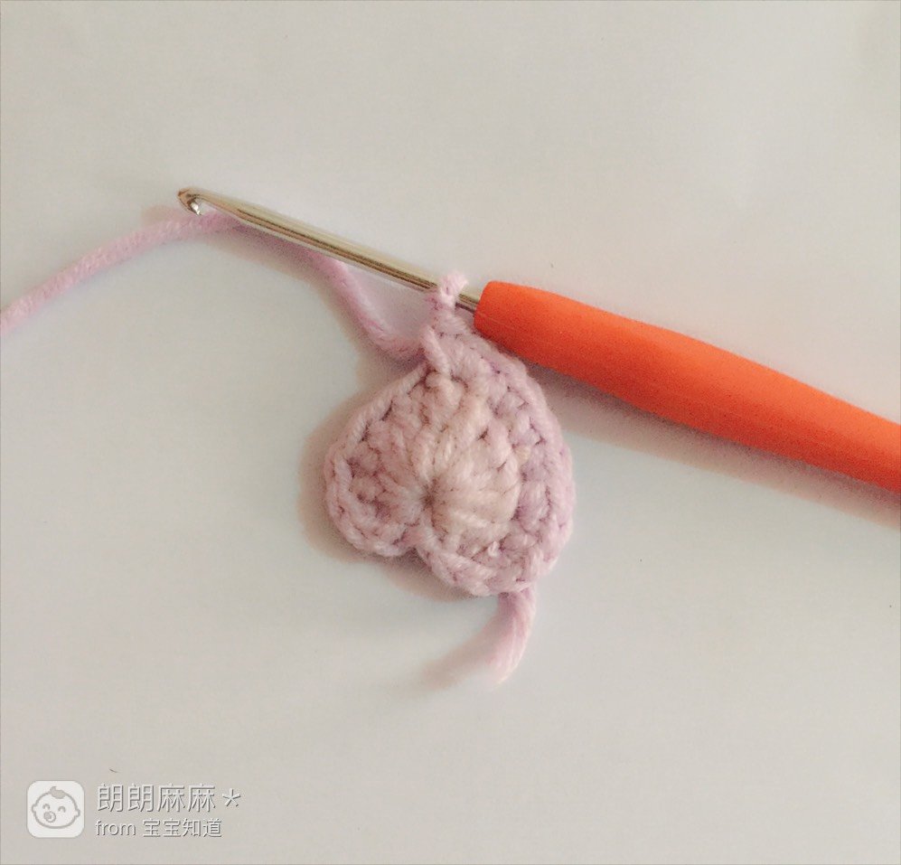 勾三针锁针,在中间的洞里勾好引拔针,完成后如下图