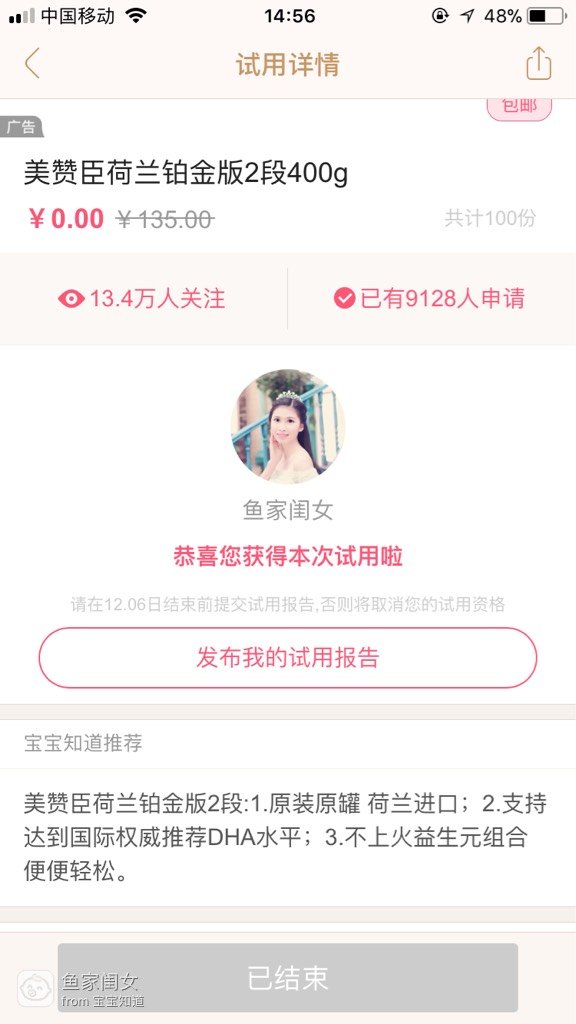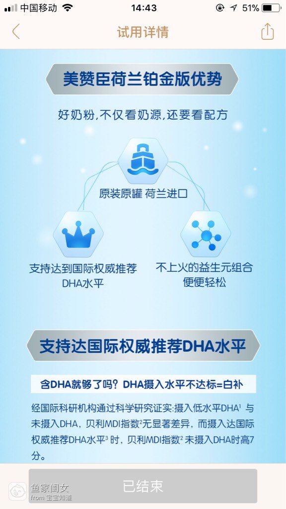 发貌减劣货速度很快,从中了试用到拿到手没几天时间,包装得很精致,看得出很认真,两块泡沫板紧紧的包裹住奶粉,使奶粉避免在运输过程中爆罐。拿到手的时候,奶粉罐完好无缺。