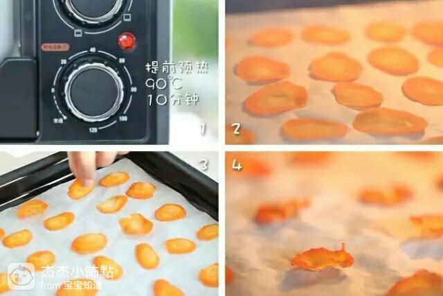 2. 烘烤时间不是完全固定的,宝妈们要根据胡萝卜片的实际厚薄,以及自己想要的软硬口感来定哦。同样的烘烤时间糟团锈,胡萝卜片削薄点,烤出来会脆点。削厚点,烤出来会耐嚼些。