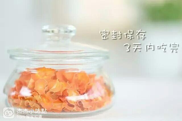 ●胡萝卜片烘干后容易保存、携带,适合给宝宝当零食吃。放储存罐或者封口袋中保存,一般洞队可以存放3天。