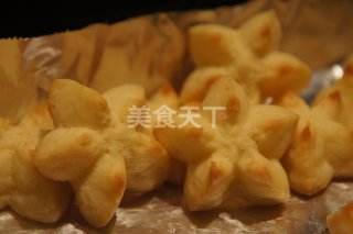 16 用圆口花嘴在烤盘上挤出面糊。