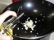 5. 倒入适量的粟米油,爆香眨录蒜末。