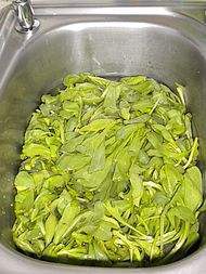 2. 茼莴浸泡30分钟,然后择洗干净。