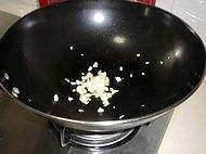 4. 热锅,放入适量的蒜末。