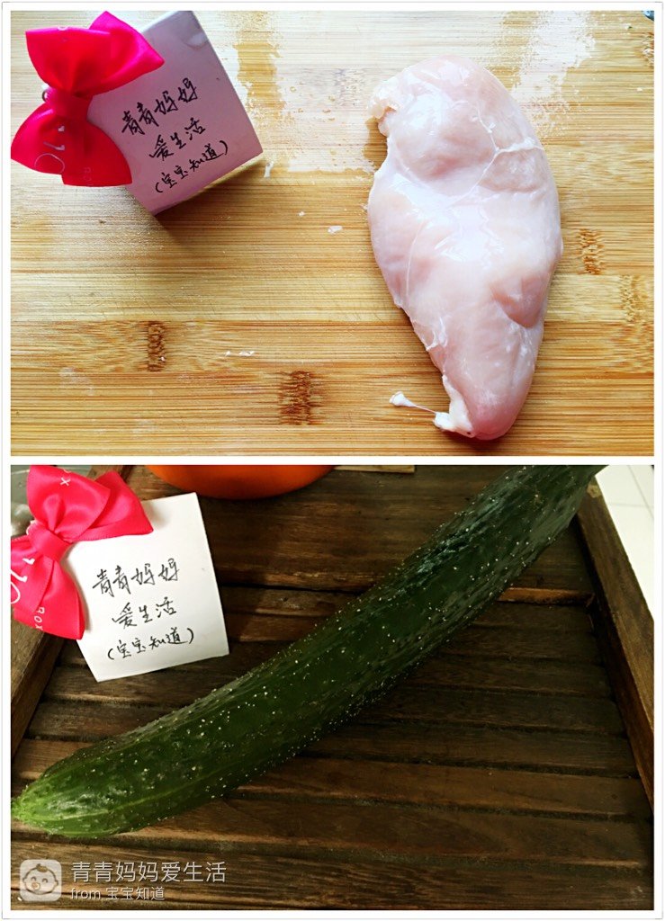 主要原料:鸡胸肉一块,黄瓜一根。