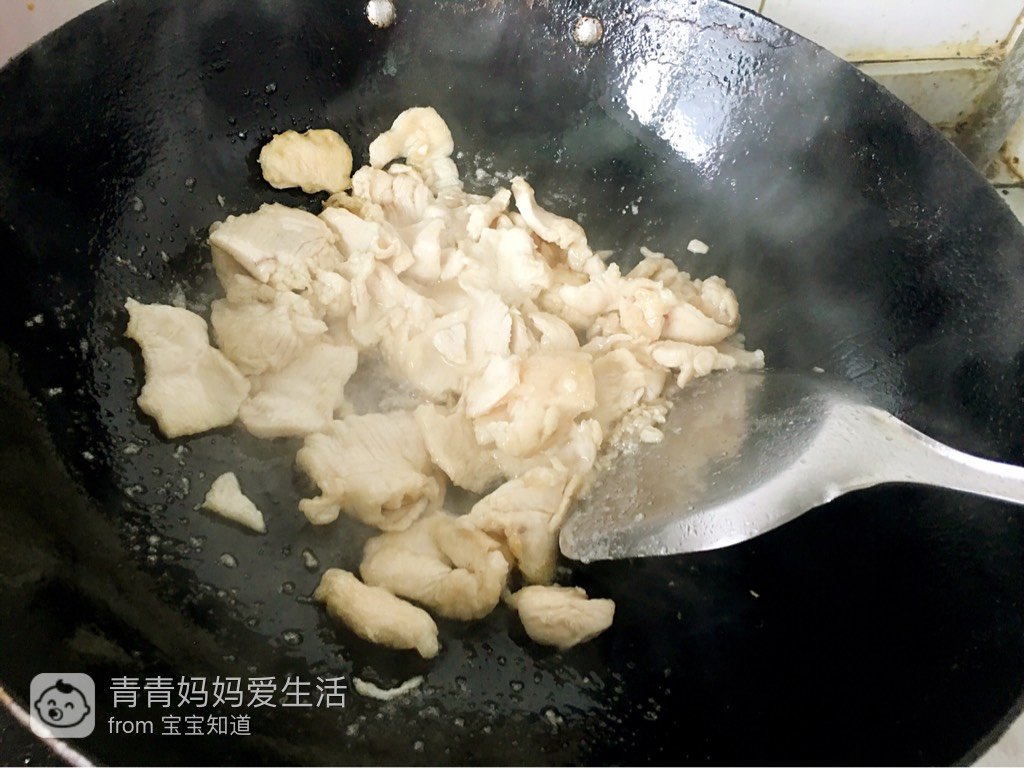 热锅凉油,滑入鸡片。