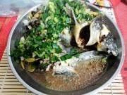 把香菜,葱末撒在鱼上.