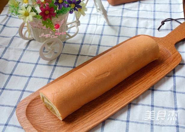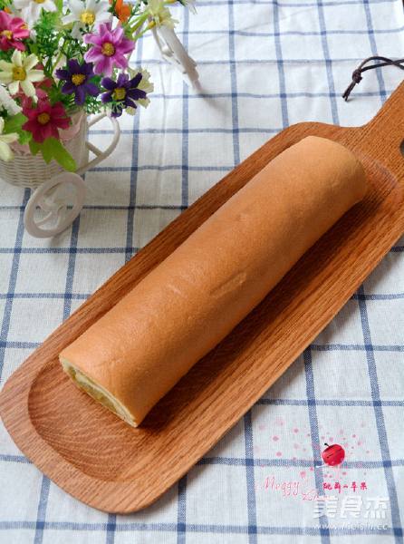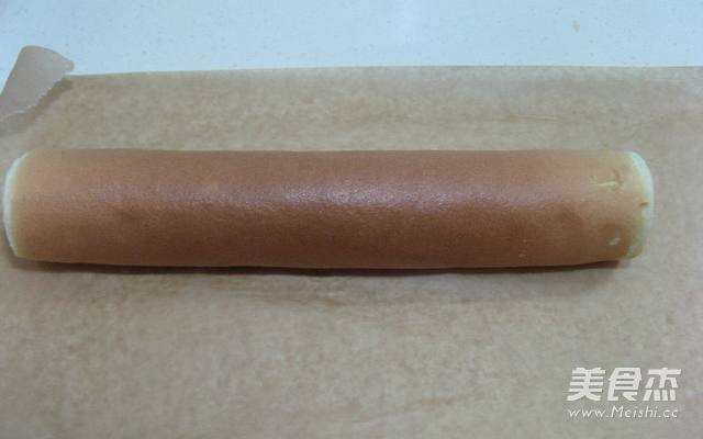 15. 徒手或者利用擀面杖将蛋糕卷起,再轻轻按压,使蛋糕之间更加贴服