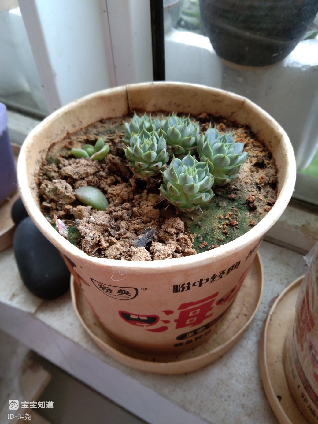 因为家里经常买那种一次性杯子装的酸辣粉,吃完了酸辣粉也就随之丢掉了。后来我觉得酸辣粉的盒子可以种花,然后前两年就试了一室认下种了几棵仙人球,发现长得还挺好的,而且盒子是纸盒子也会透气。然后这两年我就把这样的盒子全部留下来,种了好多的多肉。