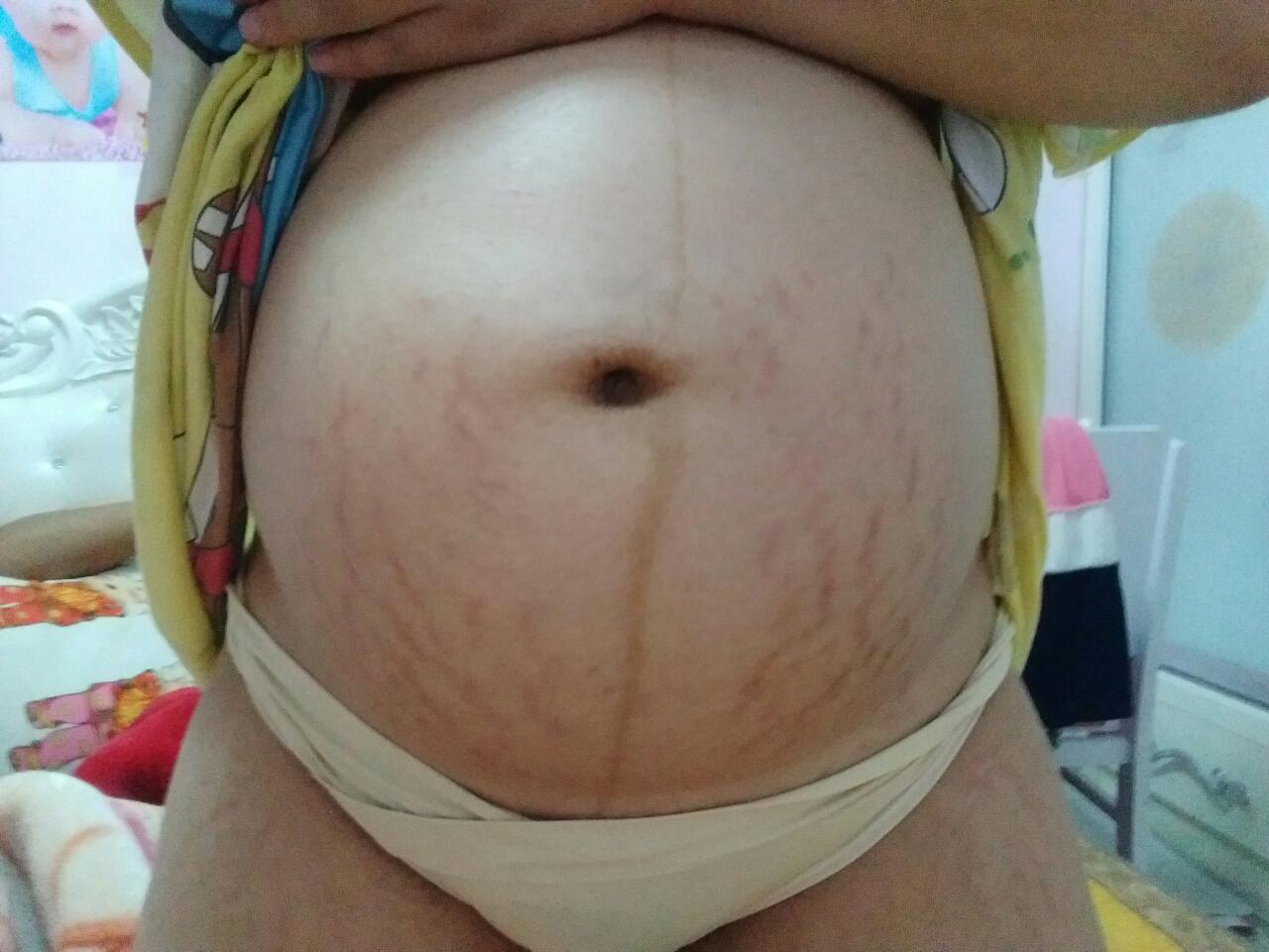 我也开始长妊娠纹了,我肚子比你的尖,我怀的是男宝