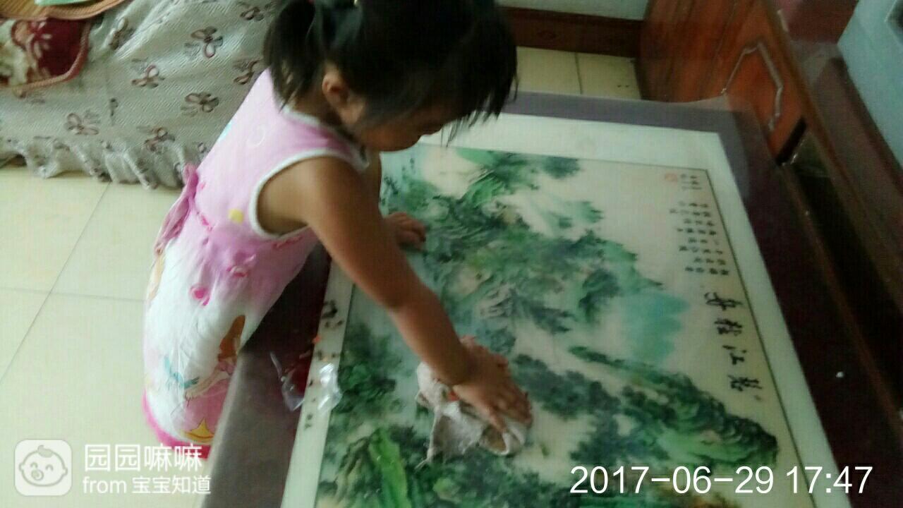 这擦着桌子,嘴里还说妈妈还有活干没?我说还是你自己找活干吧。这又正在给我叠衣服呢。