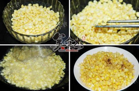 3、油的用量要稍多些,玉米粒是放油里浸炸。