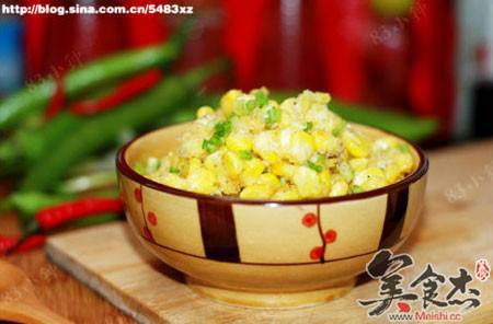 2. 在玉米粒里加入一个鸡蛋,拌匀