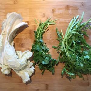 蒜,姜切丝,葱切段,再切少量小丁备用