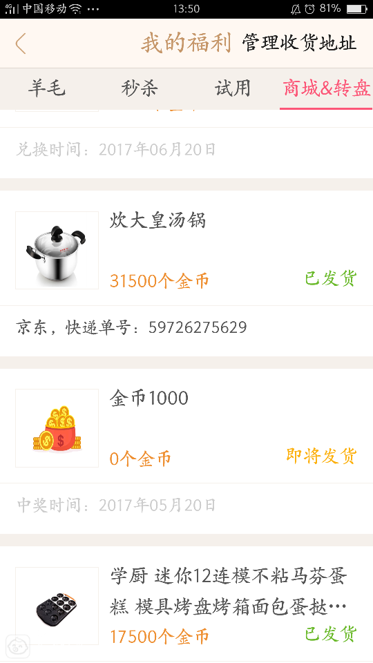 毕竟宝宝知道活动多,奖品多,听说后台发放奖品的妹子也辞职了,刚接手的妹子估计是还没适应好吧,好吧,没有饥高就没有吧,留着金币换大件!