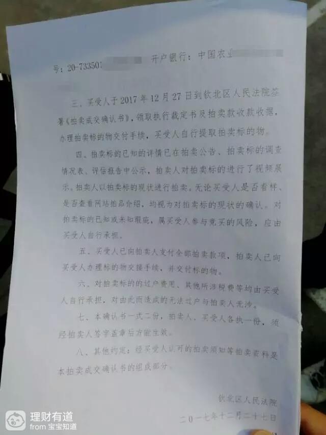 当时距离拍卖结束只有一天的时间,为此,他专门打电话到钦北区法院,询问是否可以实地看房。工作人员称,这时已经不能看了。
